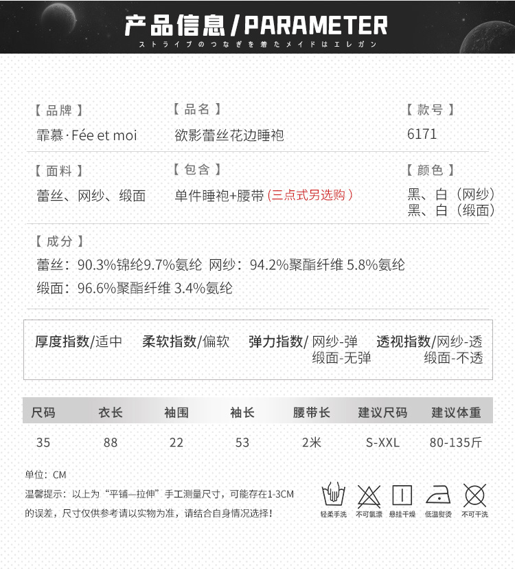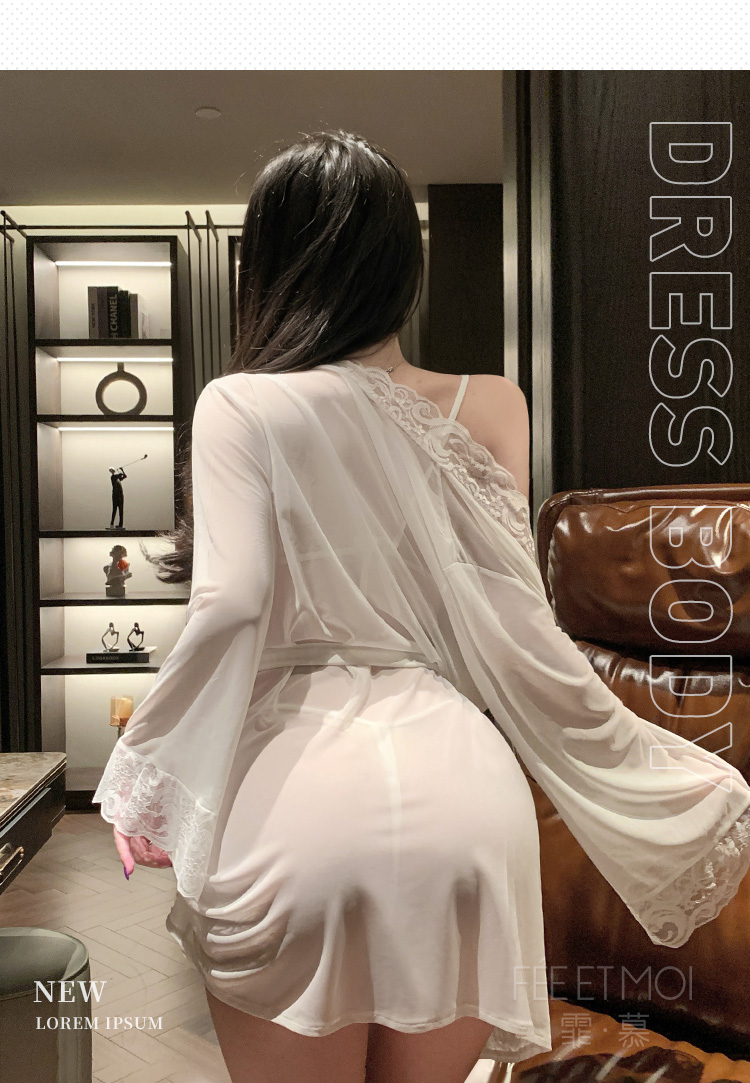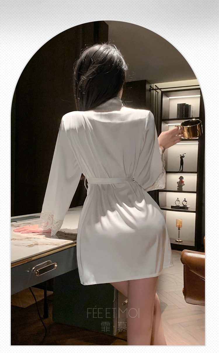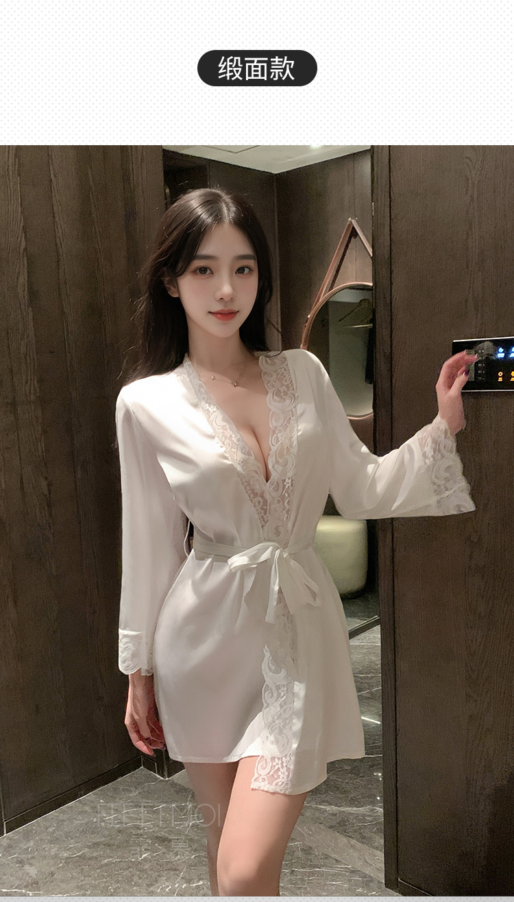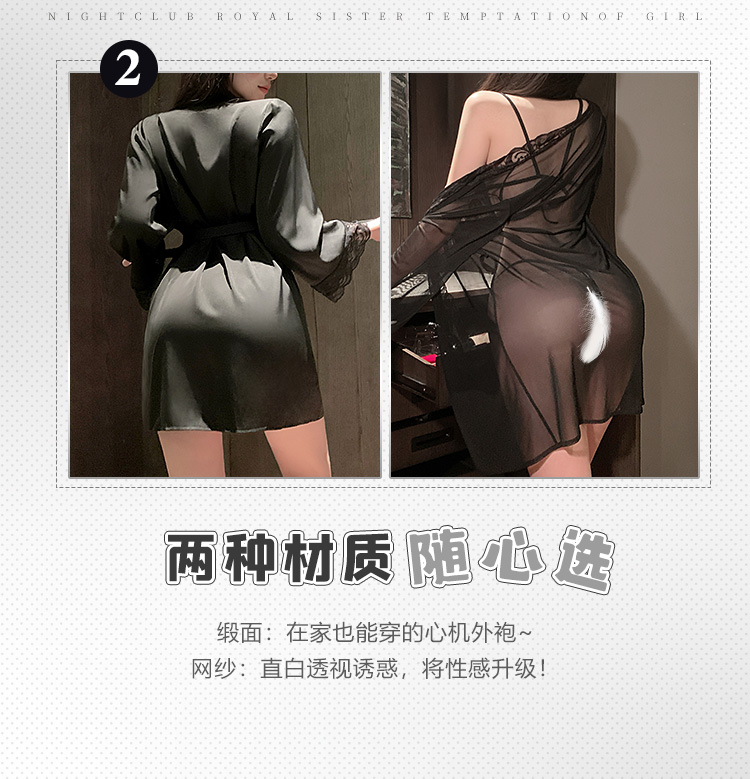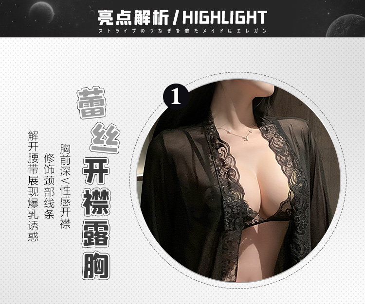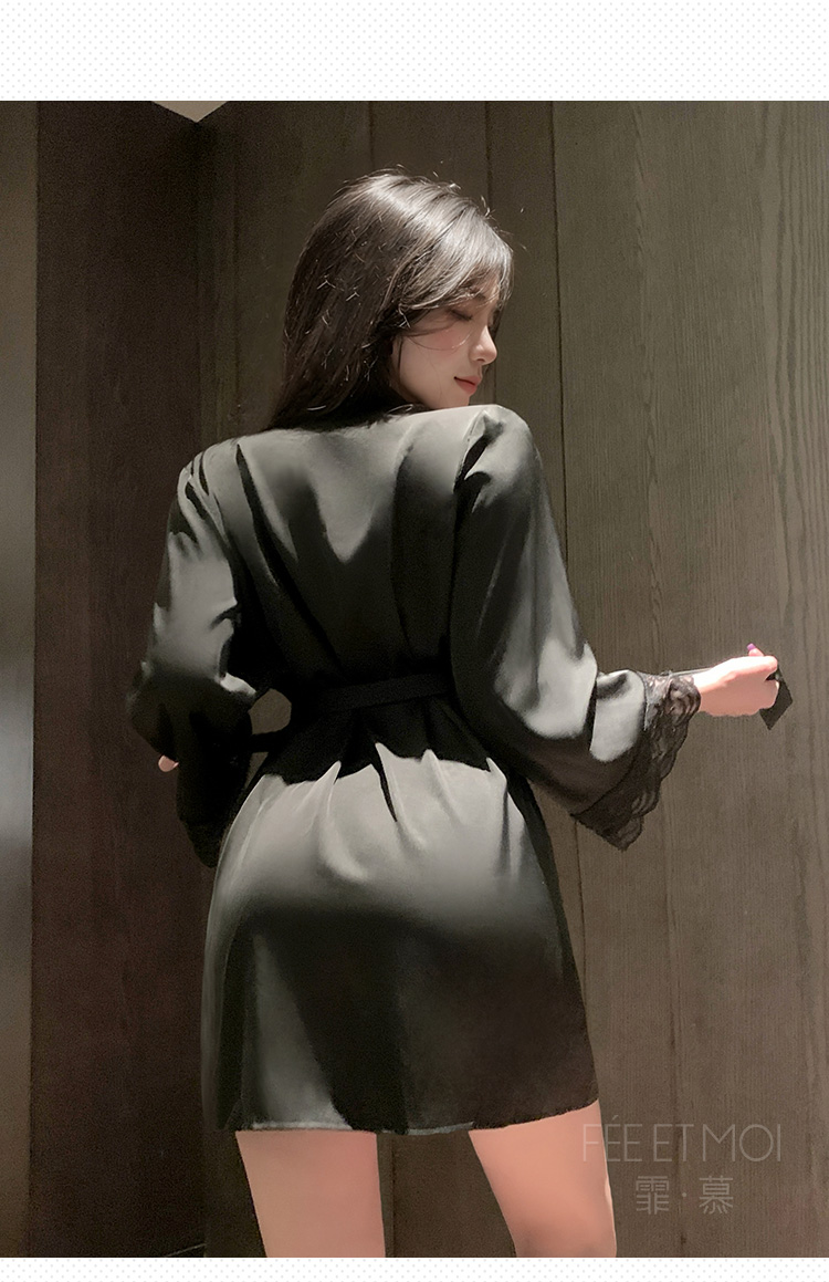 欲影蕾丝花边睡袍 ◆网纱◆黑【单件睡袍+腰带】C156