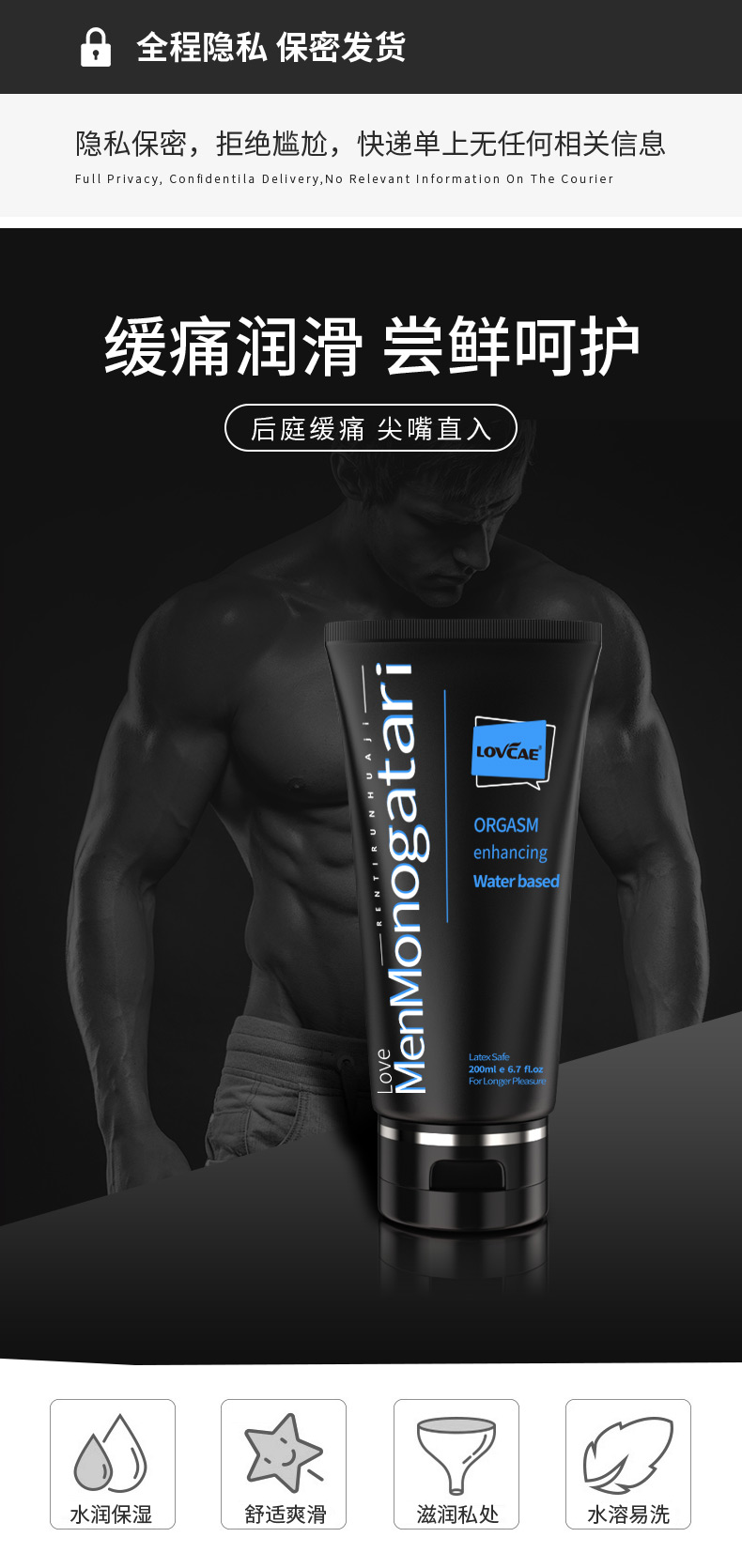 [黑魂兄弟汁]爱威康男男专用后庭专用水溶性润滑油500mI L30